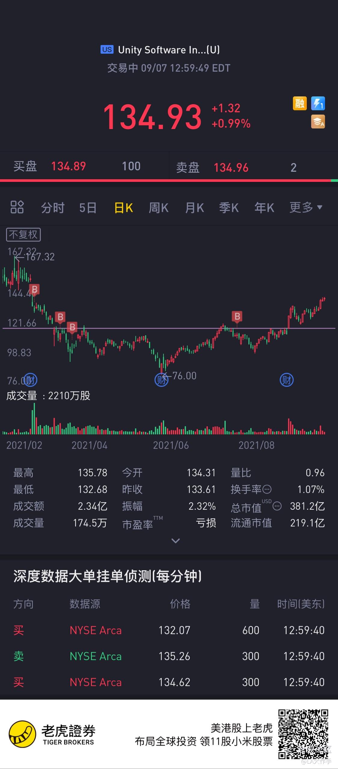 长期看好手游引擎龙头Unity,一路加仓,价值投资,最近终于是进入了上升趋势,机构目标价也一高再高,如果月底苹果发布会能够让VR概念再上一波热度,Unity接近前高甚至突破都是很有可能的。这将会是一个伟大的投资!