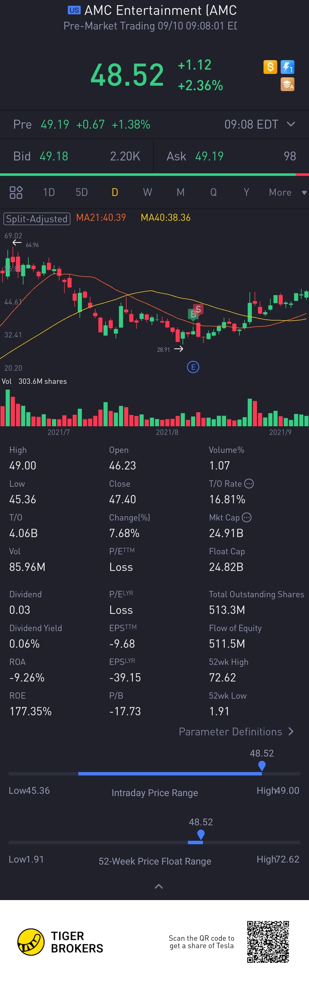 $AMC Entertainment(AMC)$This stock is very volatile. If you want to trade . Look for a good support position to enter the trade. I will be camping for 1 [微笑]
