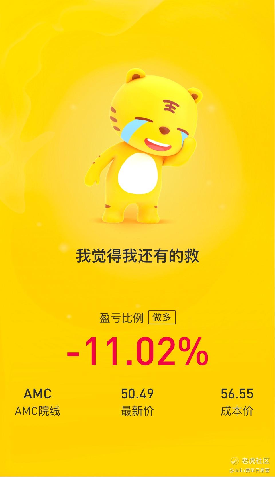 曾经也是74美金买下的AMC,😂套了几个月,从-50%,通过慢慢地补仓,终于今天快涨回原价!