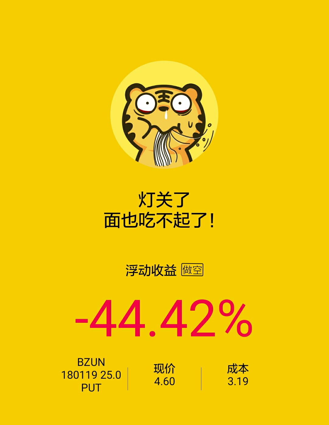 $BZUN 20180119 25.0 PUT(BZUN)$ 抄底抄到半山腰。不过比直接买正股的多个安全垫。