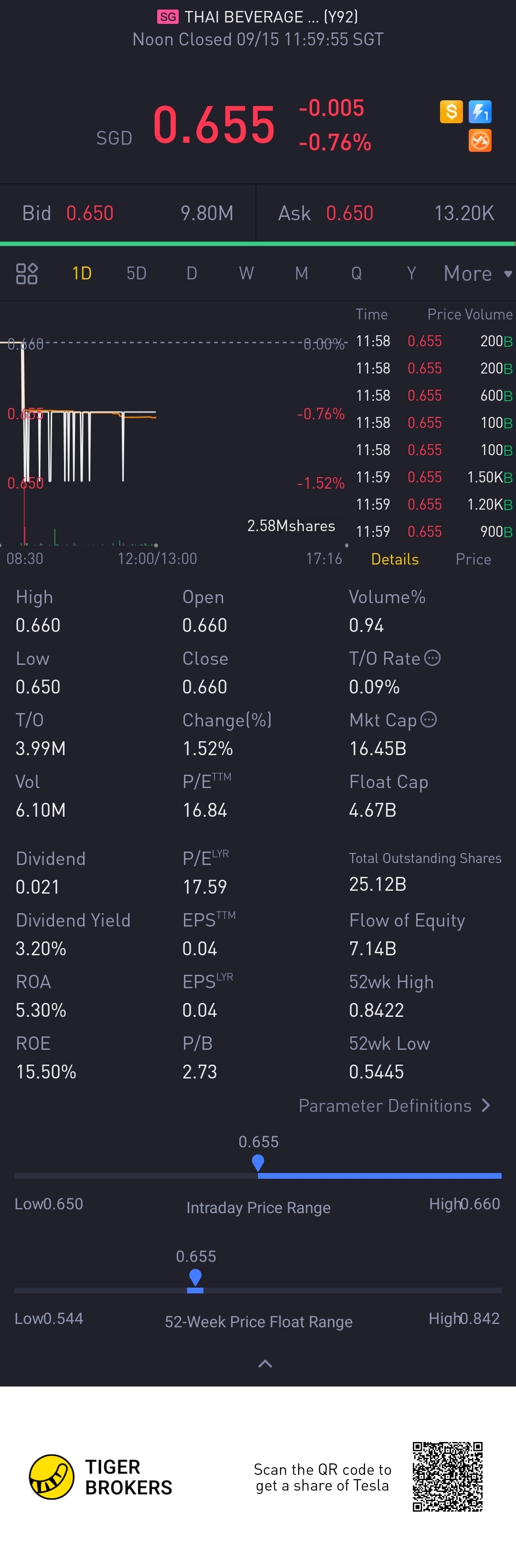 $THAI BEVERAGE PUBLIC CO LTD(Y92.SI)$