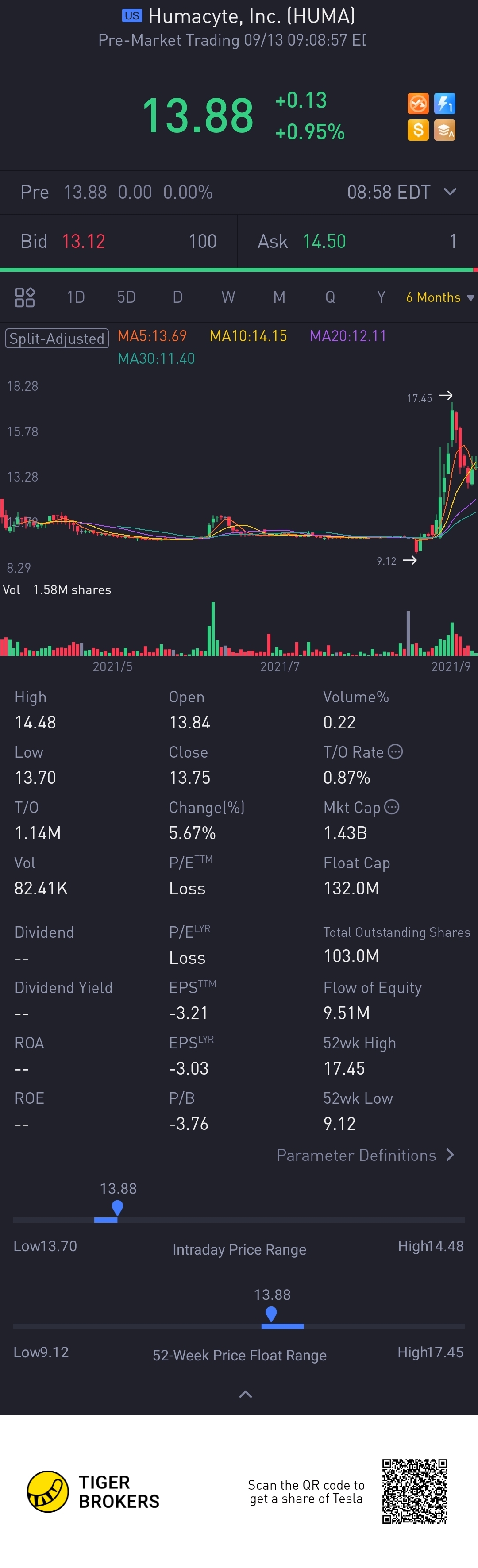 $Humacyte, Inc.(HUMA)$will HUMA ever going to cross 20? Or got to wait till their next quarter results.
