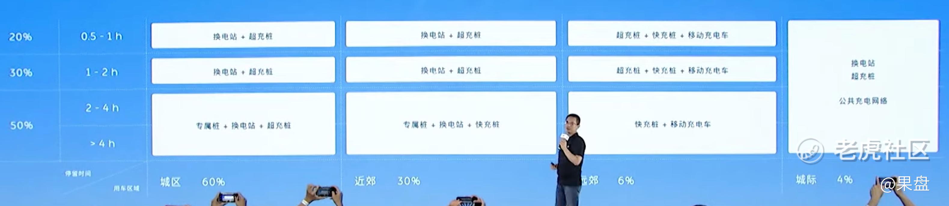 其实,上面这张图,也列出了蔚来的主要补能方式:目的地充电站、超充站、换电站和移动充电车,当然,还有个蔚来的家用充电桩。