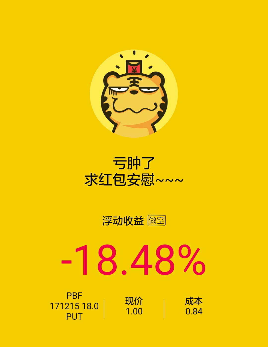 $PBF 20171215 18.0 PUT(PBF)$ 虽然暂时亏点,但是很安心,到时肯定不赔。效果等同理财。