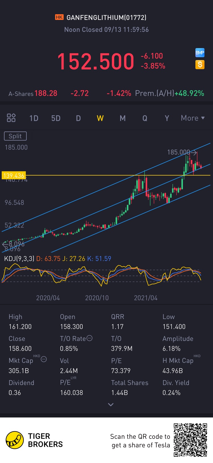 $GANFENGLITHIUM(01772)$a strong uptrend stock that retesting support near 140, better than trying to catch bottom on $Alibaba(09988)$or $TENCENT(00700)$[Tongue]