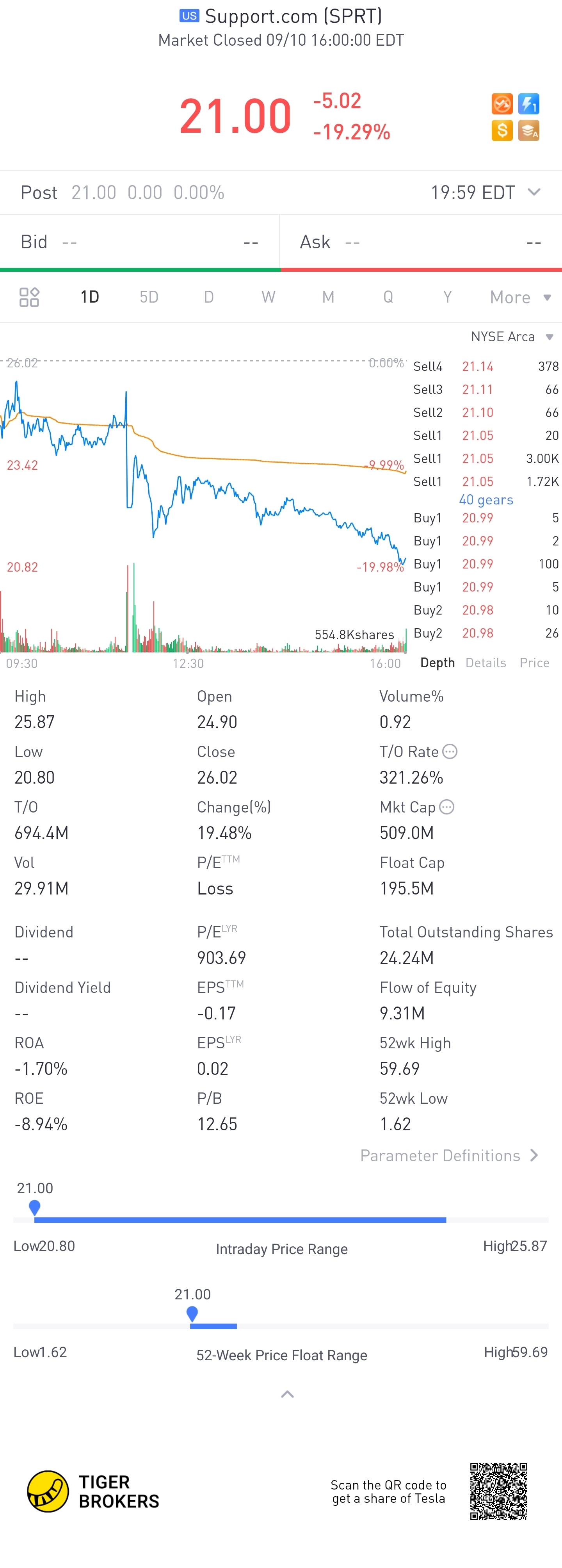 $Support.com(SPRT)$ support level at 19.70 have been tested and proven, now it is at the upside at $21. It is gonna continue to gradually grow with more volume.