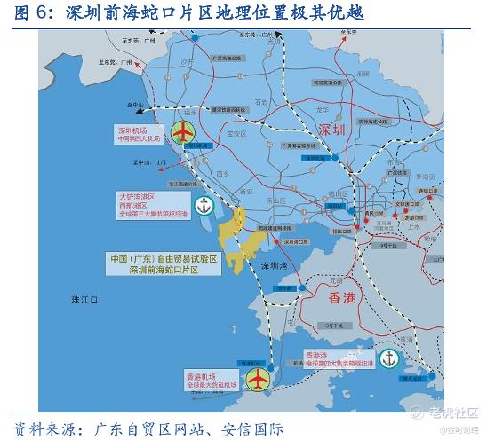 从前海与蛇口片区的地理位置来看,可以说占尽了发展的红利,北临广州、西面澳门、南临香港、东依深圳市中心。