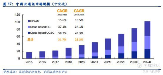 展望后市,据前述机构预判,基于云通信解决方案的市场规模有望延续高速增长势头。CIC预计,至2024年该市场有望达到千亿规模,2019年-2024年期间复合年增长率有望达到23.3%。