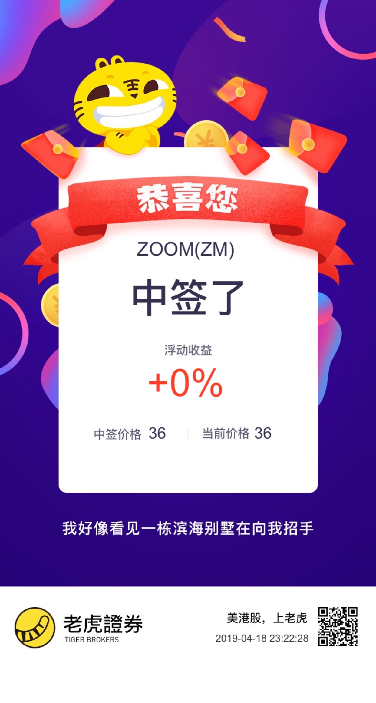 $Zoom(ZM)$谢谢老虎,中签了!!!