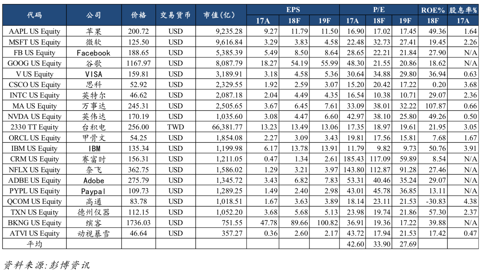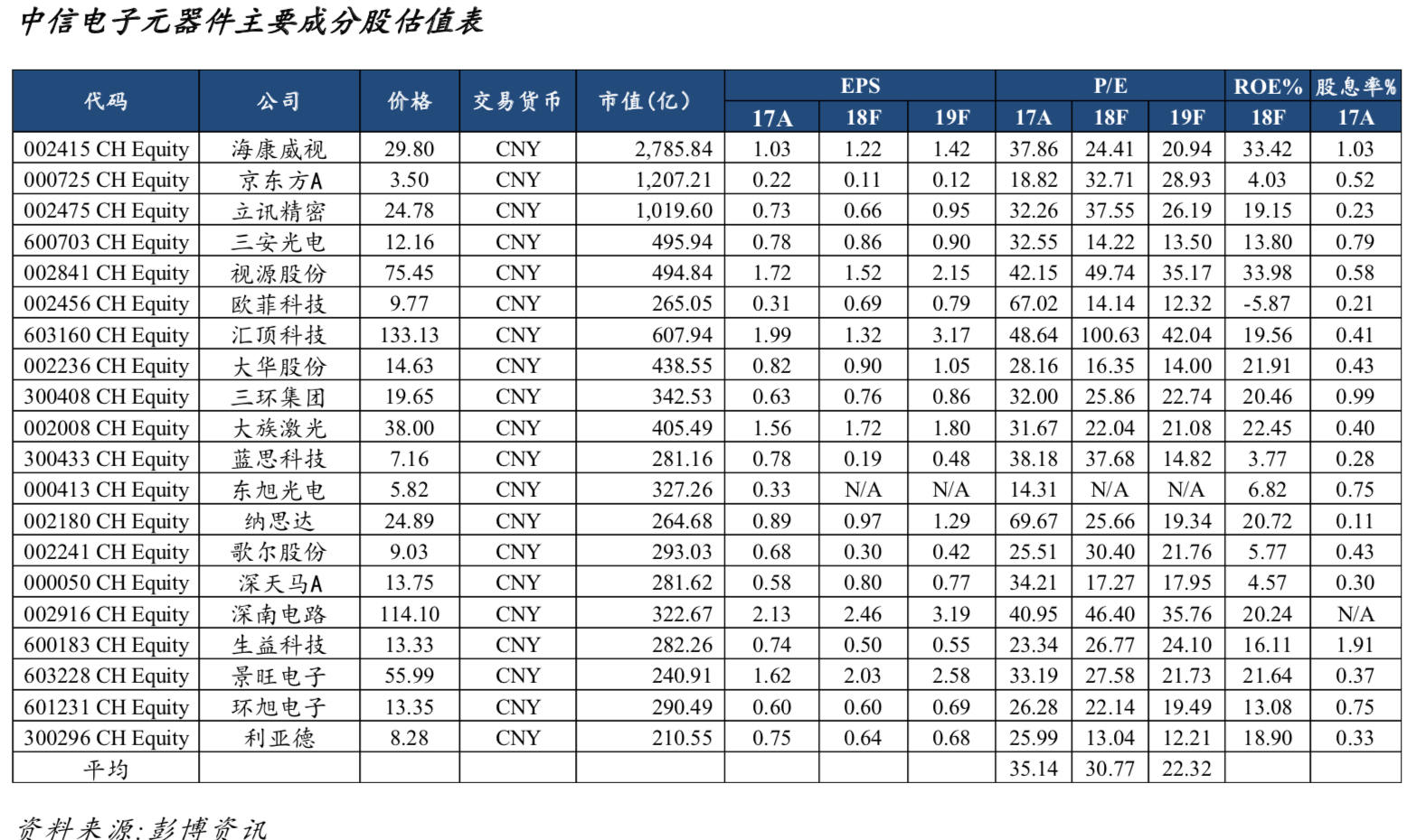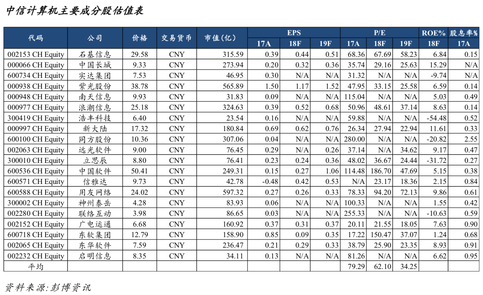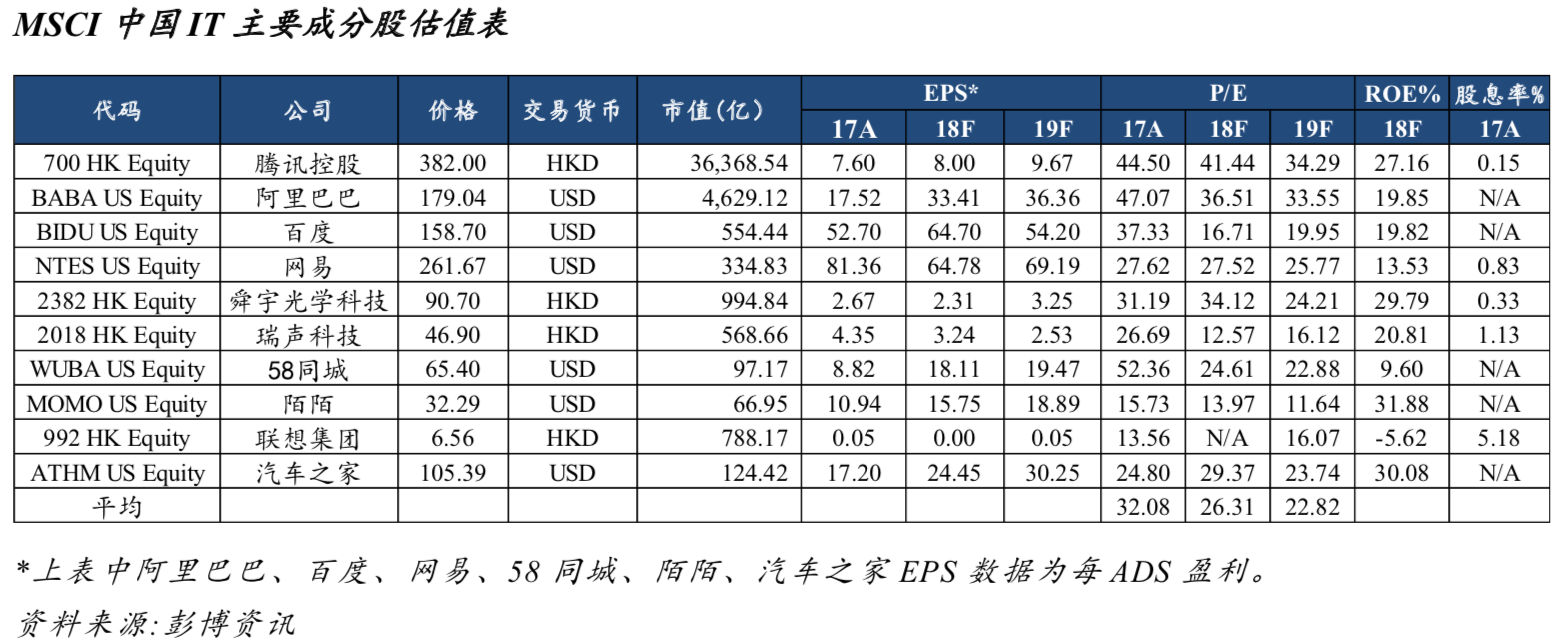 五.MSCI中国IT指数和中信相关板块指数主要成分股估值