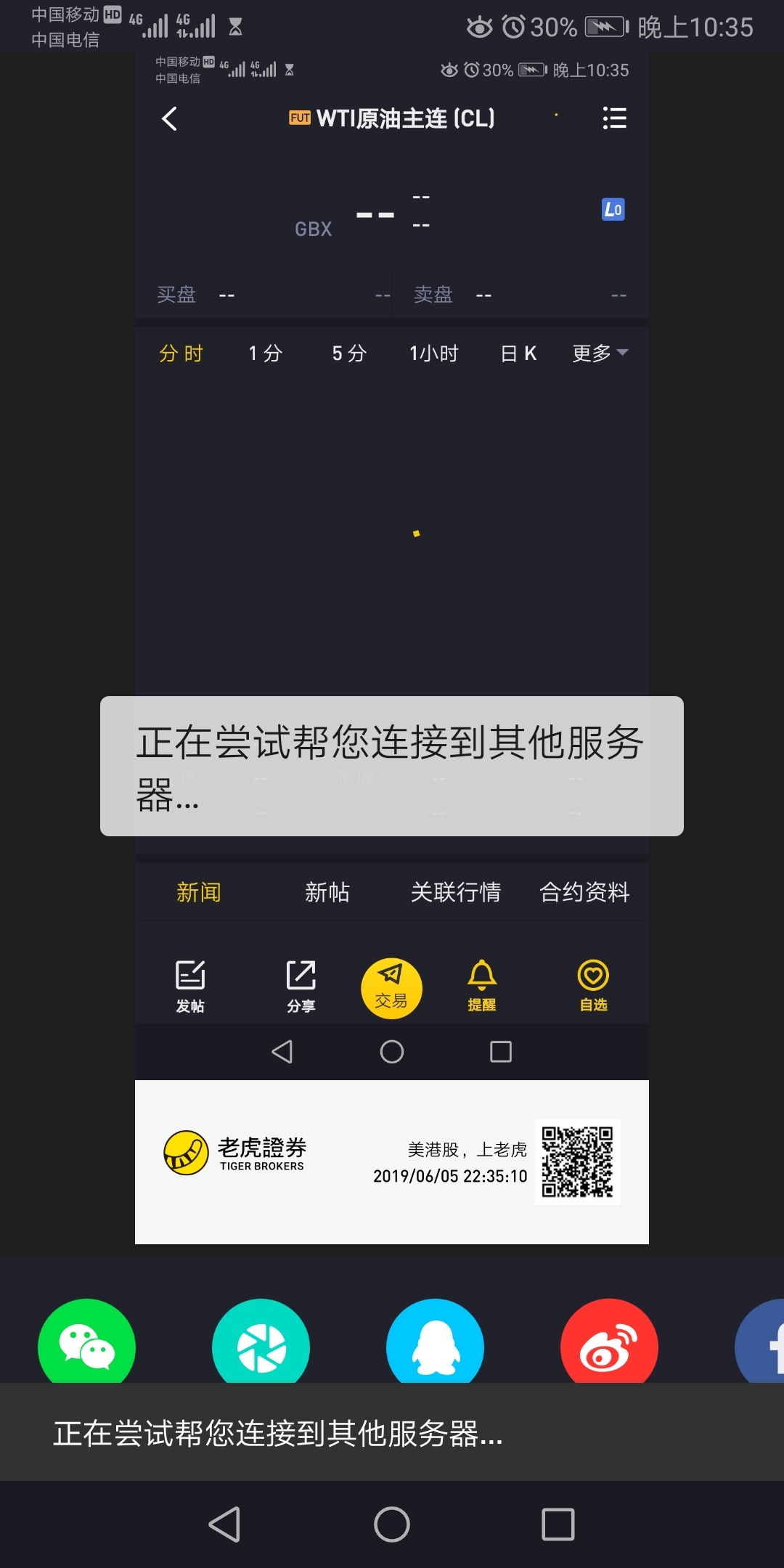 交易量太大了服务器瘫痪了,哎,老虎上买期货弊端太多了,这么好的行情错过