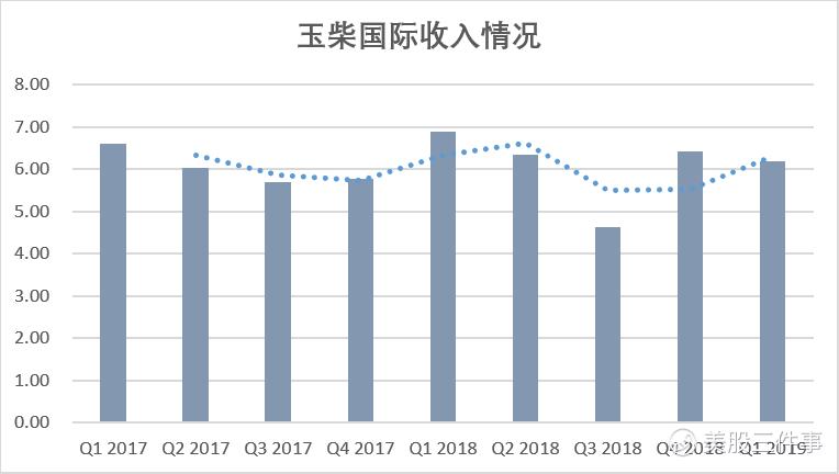 玉柴国际2019年第一季度的收入为6.18亿美元,相比于2018年第四季度的6.42亿美元下滑了3.73%。从季度来看,玉柴国际的收入始终保持在相对稳定的水平,一直维持在6亿美元左右。除了2018年第三季度公司的收入下滑至4.64亿美元以外,其他季度月份玉柴国际的收入水平波动不大。反映出公司的销售渠道与客户源比较稳定,公司的发展已经非常成熟。