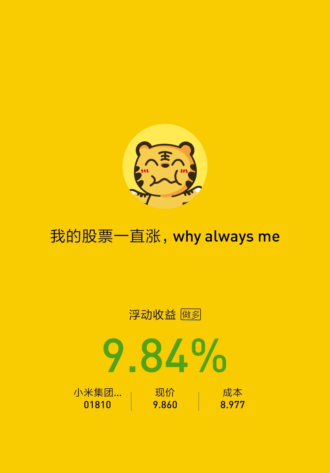 运气吧!但少了点,从趋势看,还会低,如果价格低我好想补仓的,谁都想不到小米会如此频繁回购,这个月都回购了七千多万今天又回购了,看来是要保证9.5了,后悔买少了 [笑哭]