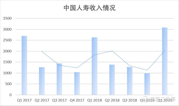中国人寿2019年第一季度的收入为3080.71亿元,相比于2018年第四季度的982.62亿元上升了213.52%中国人寿2018年第一季度到2019年第一季度,各个季度的收入分别为2630.25亿元,1388.79亿元,1275.13亿元,982.62亿元和3080.71亿元。从总体来看,公司的季度收入波动较大,每个财政年度的第一季度,公司的收入都会暴增。公司业绩的波动是由于业务模式所产生的,对公司的总体影响不大。