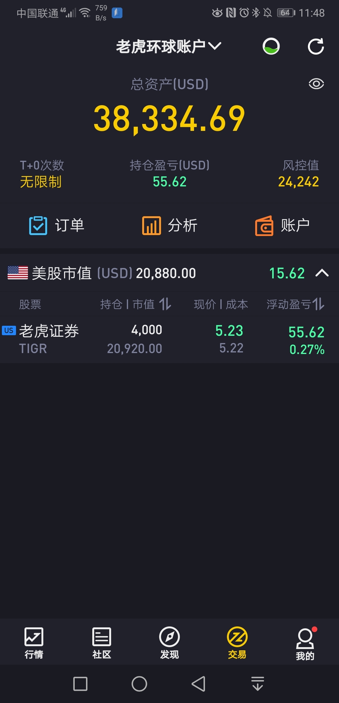 $老虎证券(TIGR)$ 老虎,我信你了,从其他亏的钱靠你赚回来了[开心]