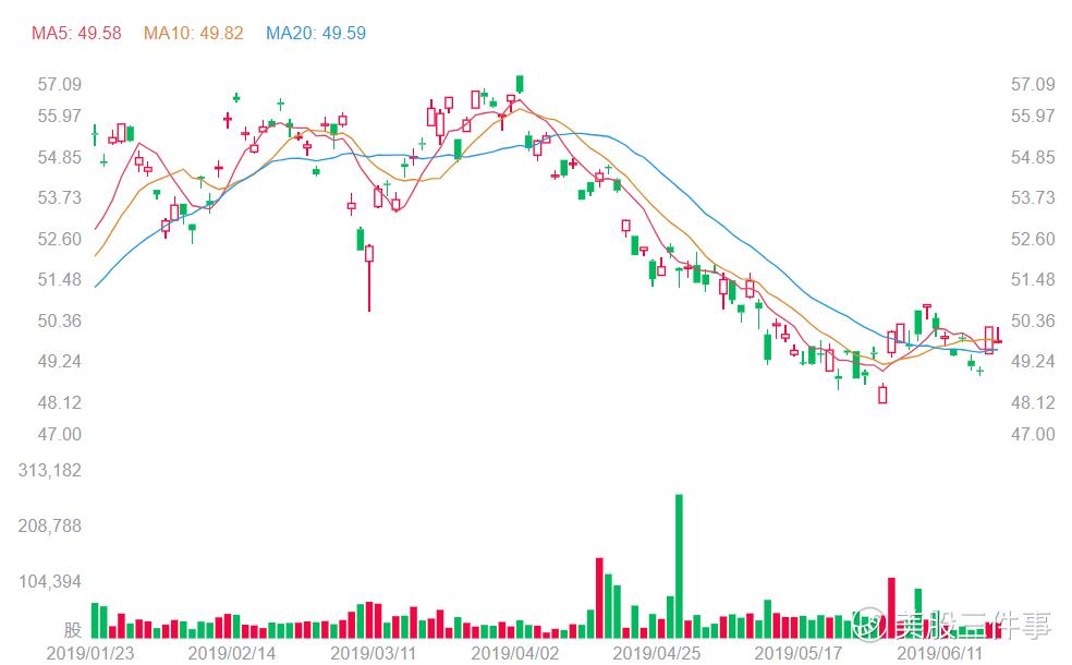 截至美东时间6月19日盘后,中国电信目前的股价为49.82美元。公司股价在4月2日创出阶段性新高55.65美元后,受中美贸易战影响,曾出现过一波比较大的跌幅。股价一举跌破5日和10日均线。此后公司股价一路下跌,并在5月23日创出阶段性新低47.048美元。随后公司股价开始从低位反弹。目前仍处在反弹进程中。