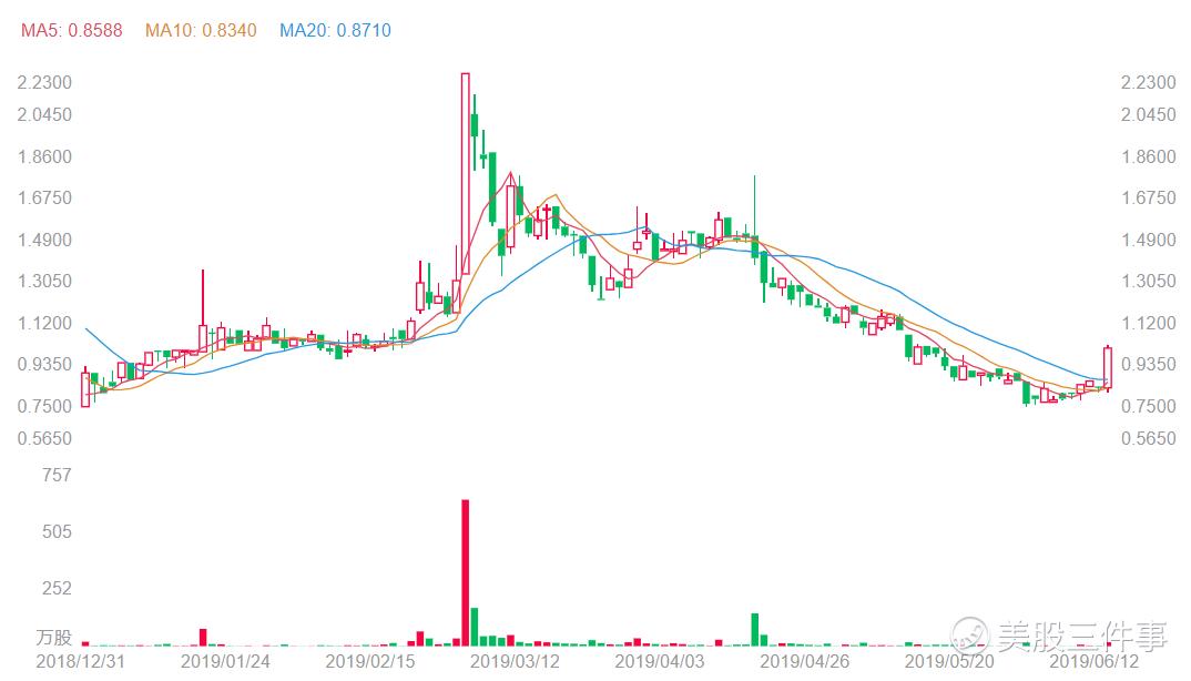 中国金融在线,目前的股价为1.01美元。公司股价在昨日出现较大涨幅。股价一度上涨20.53% 一举升破20日和30日均线。在坐台的巨大涨幅之前中国金融在线一直处在低位徘徊的状态。在6月12日,公司的5日均线与10日均线在底部出现了黄金交叉,这可能是昨日公司股价出现大涨的主要技术原因。