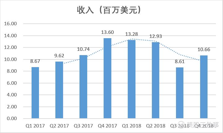中国金融在线2018年第四季度的收入为1066万美元,相比于2018年第三季度的861万美元上升了23.71%。中国金融在线的收入主要来自于金融界、证券之星两个业务板块。2018年第四季度公司的收入为1066万美元,比去年同期1359万美元下跌了27.4%。随着用户逐渐转向移动端,公司原本的门户网站模式所吸引的用户流量开始逐渐下滑,导致公司的收入较2017年出现下滑。