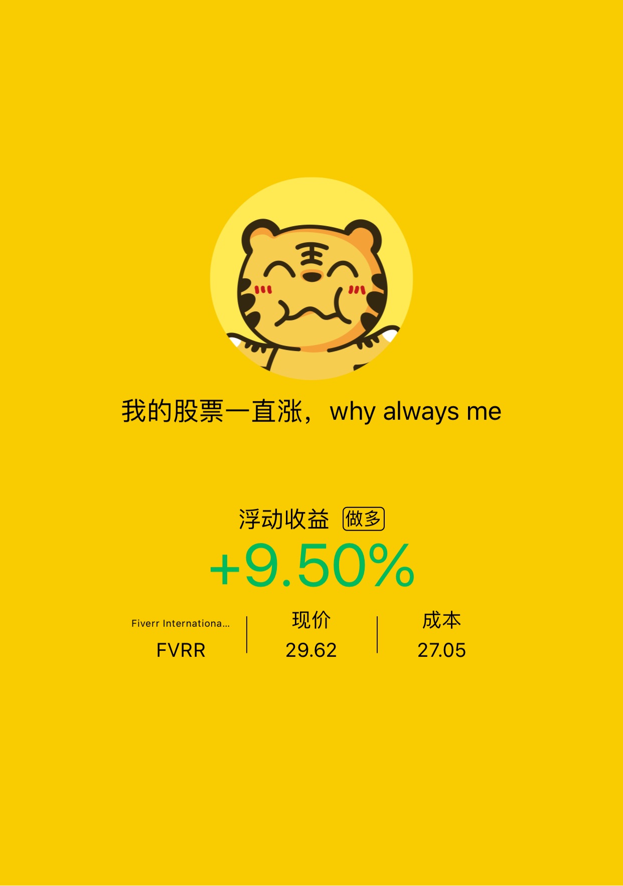 $Fiverr International Ltd.(FVRR)$ 今天一天收获还不错,希望老虎和人造肉赶快解套~