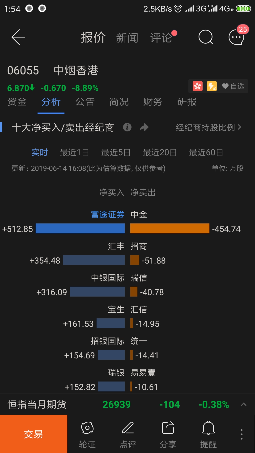 $中烟香港(06055)$ 中金最近疯狂出货,悠着点,而且富途大量买入