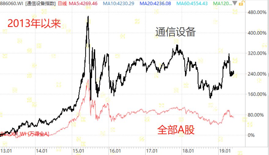但是如果把这几年发牌前后连起来看,就会发现受益于持续的业绩释放,通讯设备行业在这几年来还是超越了大盘很多的: