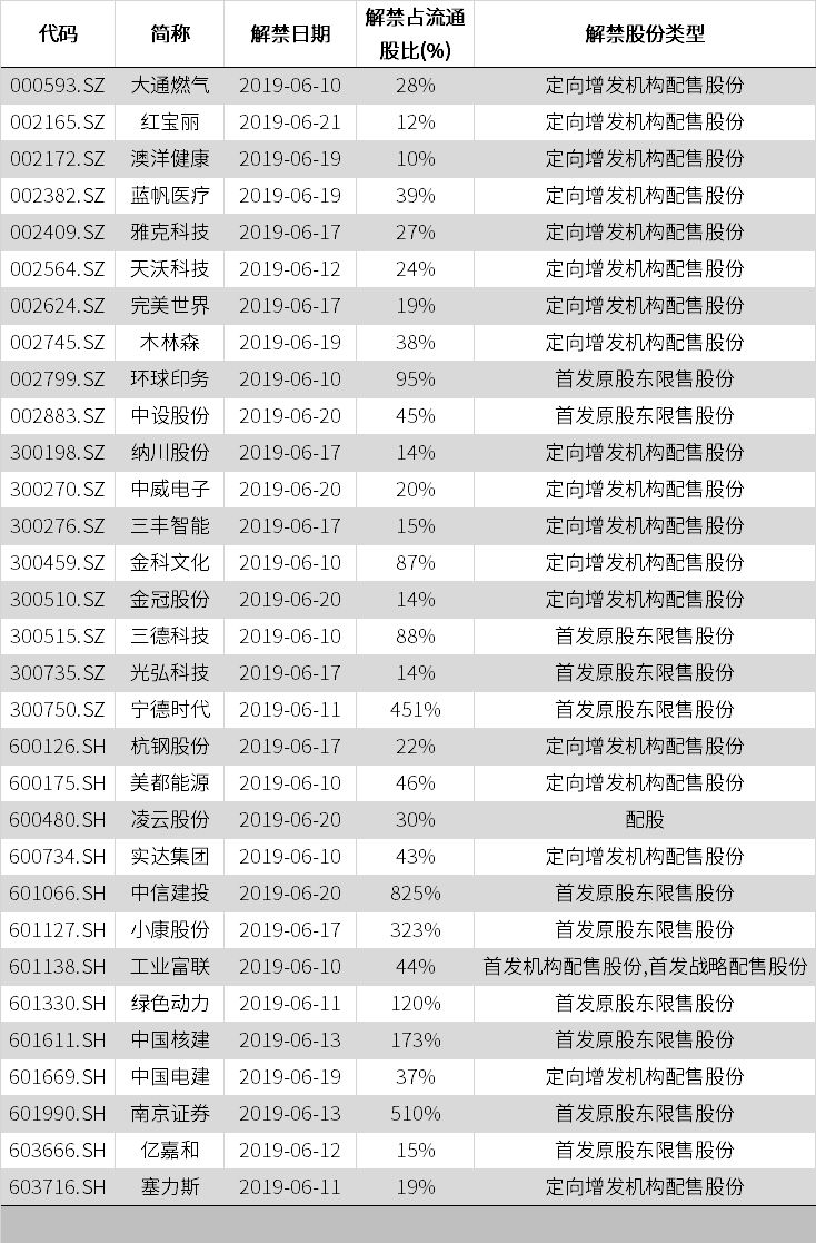 最后是每周日的未来两周解禁股提示: