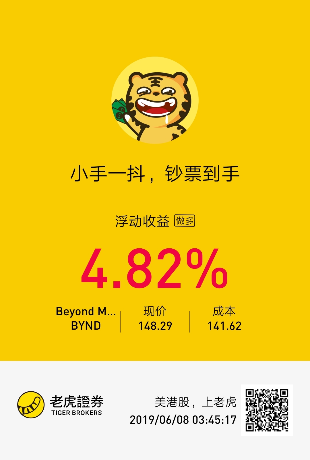 $Beyond Meat Inc.(BYND)$ 从149跌下来太可怕了。我还在截图给朋友切回老虎一看在狂跌,赶紧市价单卖了,手抖在抖。以后坚决不碰了[暗中观察]