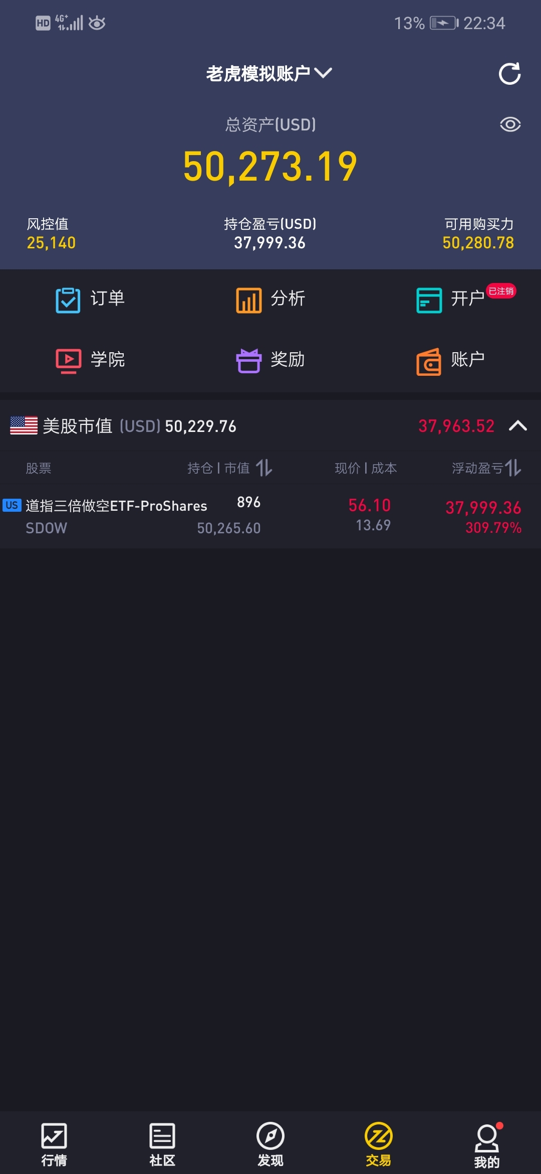 $道指三倍做空ETF-ProShares(SDOW)$ 没看懂