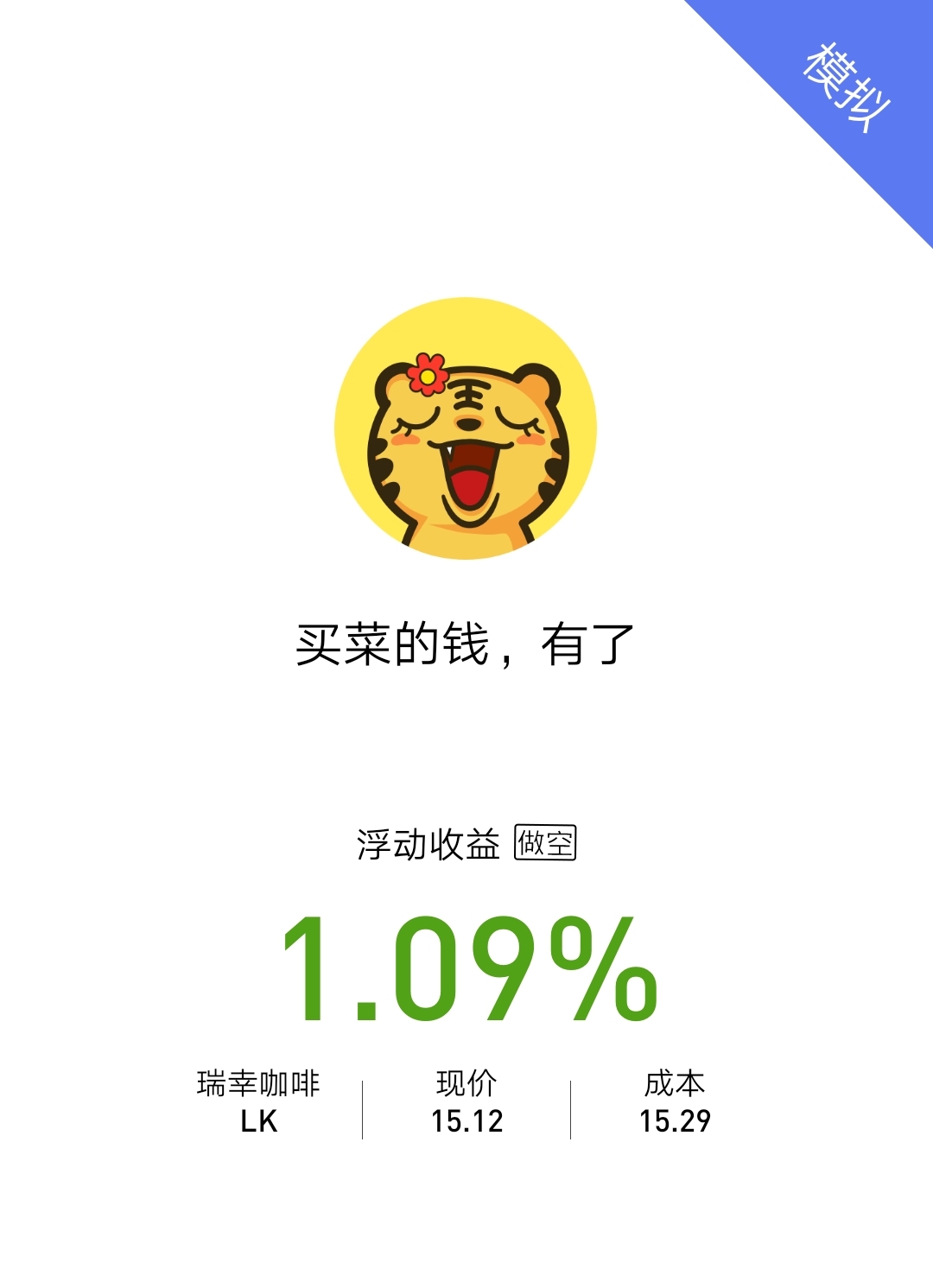 现在这个价位多空不明朗,空头略胜,我现在5成仓位15.28做空(感觉已经有空头进入了)。按照瑞幸的交易量,空头极有可能胜出。激进操作2-3成做空或者做多(但是我不建议抢反弹多)。出方向后,再重仓。保守操作,一直观望,出方向后,再决定,多空。长线看,按照瑞幸目前的财报,一定是10甚至以下,时间2-6个月。