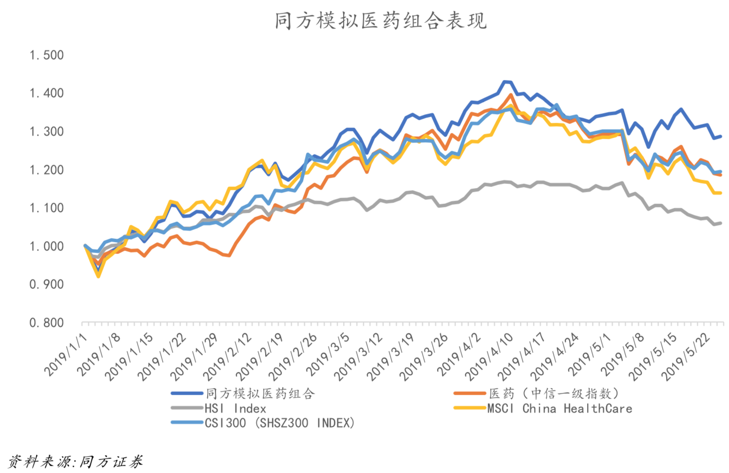 同方模拟医药组合表现vs.医药(中信一级指数)