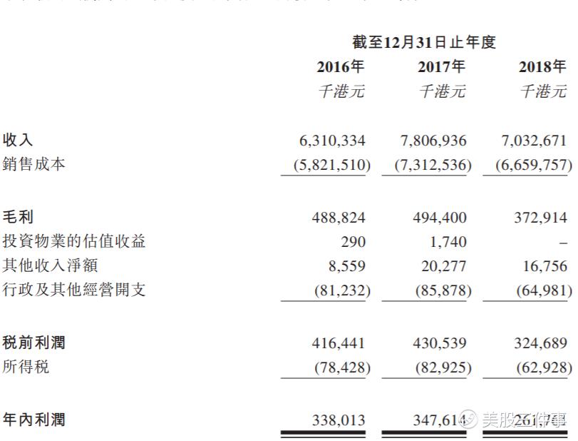 中烟香港2016至2018年的收入分别为63.1亿港元,78.06亿港元和70.32亿港元。公司的收入一直比较稳定,相对于公司的收入,中烟香港的收入利润比并不算太高。2016年中烟香港的净利润为3.38亿港元,2017年为3.47亿港元,2018年下跌到2.61亿港元。对应的收入利润率分别为5.36%、4.45%和3.71%。