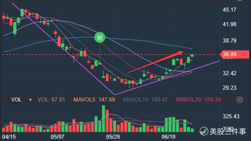截至美东时间6月27日盘后,华住酒店目前的股价为36.09美元。公司股价在4月1日创出阶段性新高45.39美元后,受中概股整体走势影响,曾出现过一波比较大的跌幅。股价一举跌破5日和10日均线。此后公司股价一路下跌,并在6月5日创出阶段性新低29.36美元。随后公司股价开始从低位反弹。目前仍处在反弹进程中。