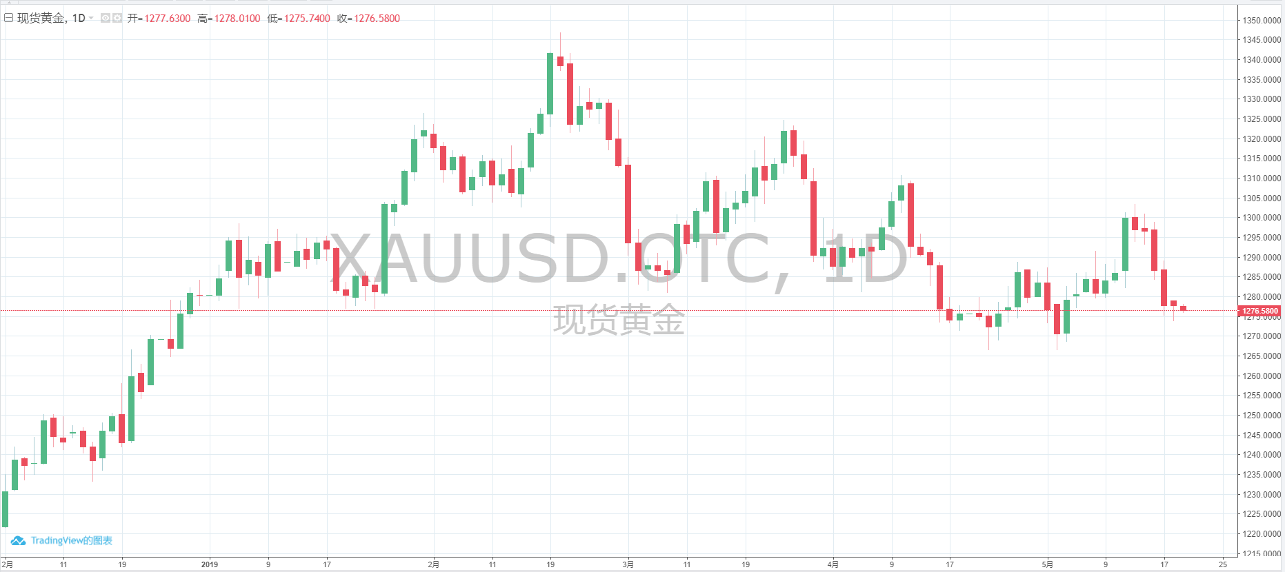 黄金年初迄今微跌,目前在1280美元下方。