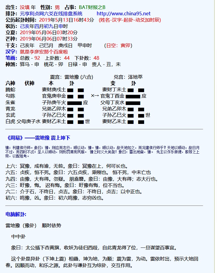 上上周,在空军大队长的感召下,本人一时兴起,操起了多年不用的玄学,想看看其应用于股事是否灵验。