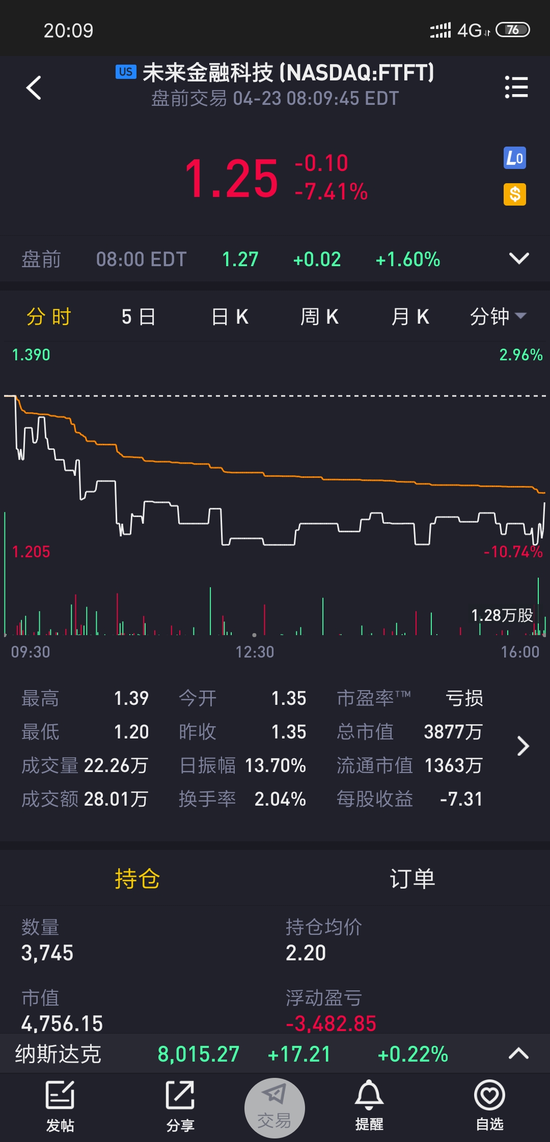 $未来金融科技(FTFT)$ 跌出一条优美的弧线