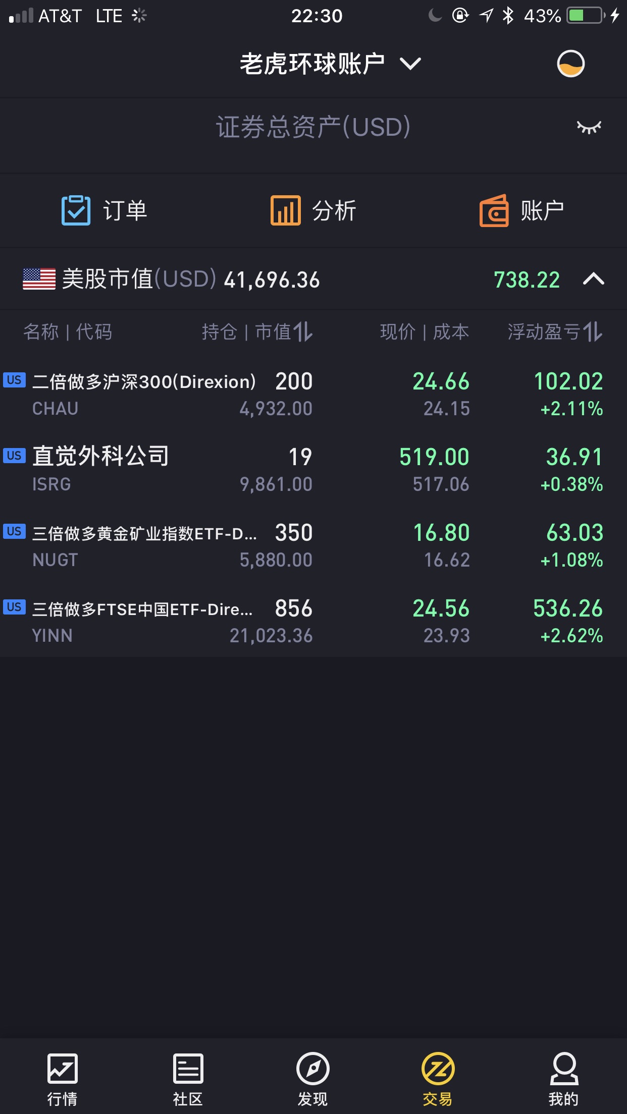 $二倍做多沪深300(Direxion)(CHAU)$$Pinterest, Inc.(PINS)$ $Jumia Technologies AG(JMIA)$ $三倍做多FTSE中国ETF-Direxion(YINN)$ $Lyft, Inc.(LYFT)$ 三倍做多中国,可以买入了,一波吃肉行情。 附带持仓图