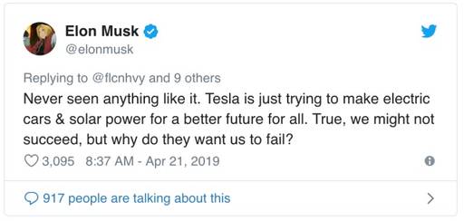 真是活久见啊。特斯拉只是想做做电动汽车和太阳能电池而已,这不都是为了大家的日子过好一点嘛。的确,我们可能不会成功,但他们怎么就那么希望我们失败呢?