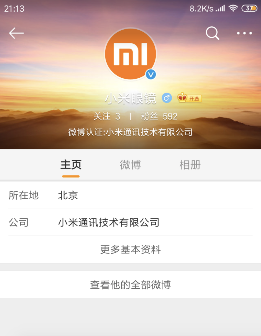 小米眼镜官方微博已经上线开通,认证信息是小米通讯技术有限公司,并且已经关注了雷军等小米高管。期待小米的入局能够降低眼镜行业的暴利$小米集团-W(01810)$