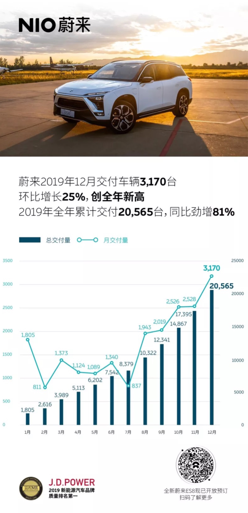蔚来12月交付3170台,四季度破8000!