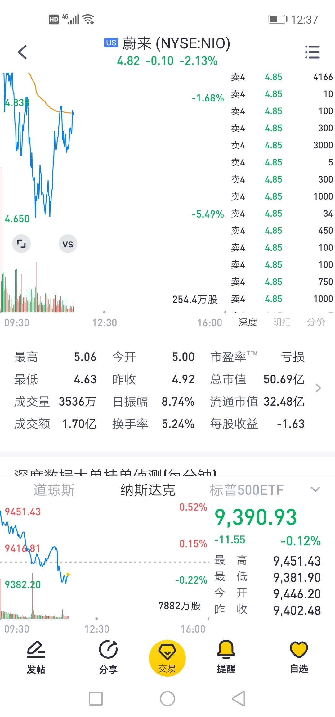 蔚来跟大盘分时图走势,能看出点啥不