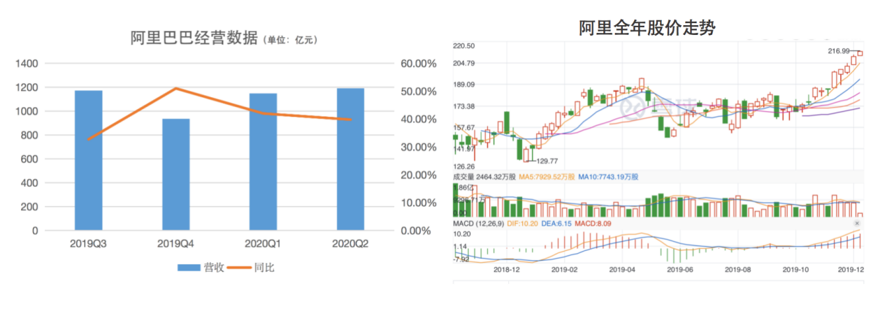 截止到2019年12月26日收盘,阿里巴巴年度股价涨幅57.95%,市值为港股4.52万亿港元+美股5804.88亿美元。