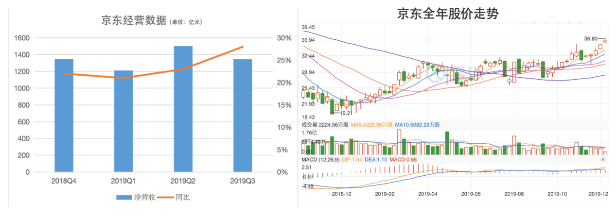 经历了2018年的低谷后,2019年京东的业绩逐渐走上正轨,股价也迎来了全面反弹。