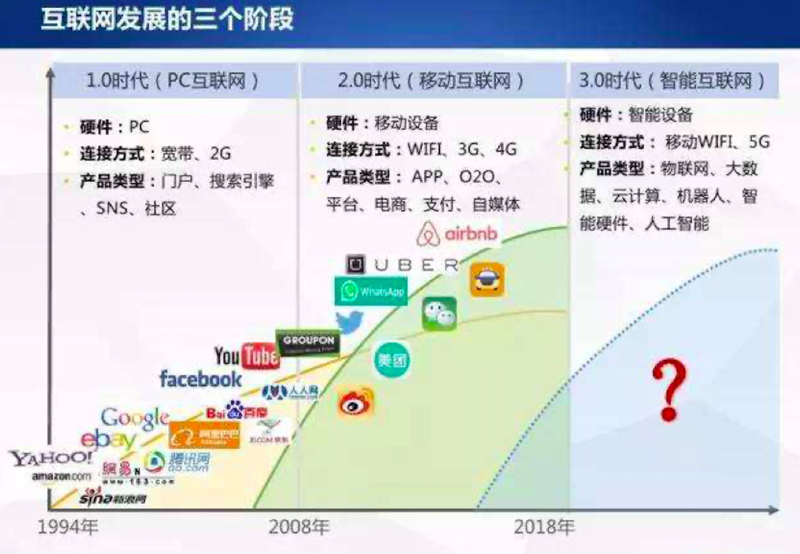 今天大家最熟悉的微信,美团,滴滴,今日头条,其实已经是互联网的2.0时代的迭代产物了,互联网的第一个时代,是pc互联网时代,那个时代的代表产物是各大门户网站和搜索引擎,今天我们最熟悉的各种产品,其实距离他们的出生时间也大多不超过10年的时间。