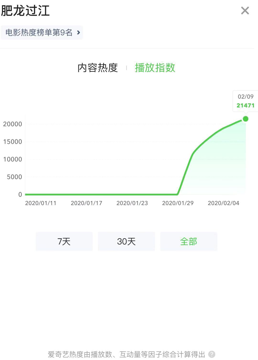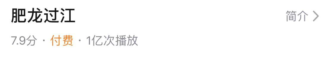 截至目前《肥龙过江》腾讯播放量已超过1亿次,爱奇艺电影榜单排名第9。