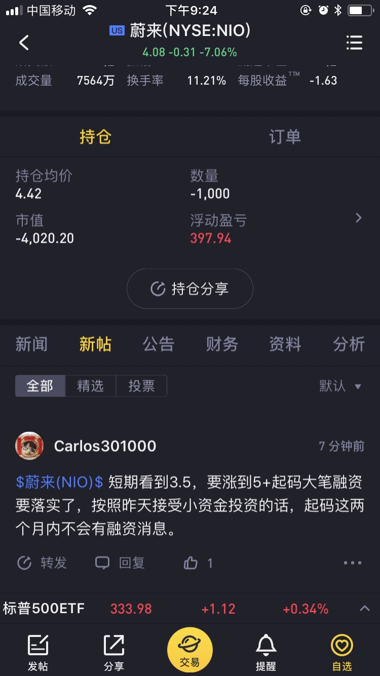 {"i18n":{"language":"zh_CN"},"detailType":1,"isChannel":false,"data":{"magic":2,"id":914376302,"tweetId":"914376302","gmtCreate":1581074090106,"gmtModify":1704343435627,"author":{"id":3532015955904787,"idStr":"3532015955904787","authorId":3532015955904787,"authorIdStr":"3532015955904787","name":"点时成金_4008","avatar":"https://static.tigerbbs.com/0221d3b943521b28436f97c089be3cbe","vip":1,"userType":1,"introduction":"","boolIsFan":false,"boolIsHead":false,"crmLevel":9,"crmLevelSwitch":0,"individualDisplayBadges":[],"fanSize":9,"starInvestorFlag":false},"themes":[],"images":[{"img":"https://static.tigerbbs.com/4a99ef6cf8fe4423467a7f69979eef87","width":"750","height":"1334"}],"coverImages":[{"img":"https://static.tigerbbs.com/4a99ef6cf8fe4423467a7f69979eef87","width":"750","height":"1334"}],"extraTitle":"","html":"<html><head></head><body> <a href=\"https://laohu8.com/S/NIO\">$蔚来(NIO)$</a>别装了。下来吧<img src=\"https://static.tigerbbs.com/4a99ef6cf8fe4423467a7f69979eef87\" tg-width=\"750\" tg-height=\"1334\"></body></html>","htmlText":"<html><head></head><body> <a href=\"https://laohu8.com/S/NIO\">$蔚来(NIO)$</a>别装了。下来吧<img src=\"https://static.tigerbbs.com/4a99ef6cf8fe4423467a7f69979eef87\" tg-width=\"750\" tg-height=\"1334\"></body></html>","text":"$蔚来(NIO)$别装了。下来吧","highlighted":1,"essential":1,"paper":1,"likeSize":0,"commentSize":8,"repostSize":0,"favoriteSize":0,"link":"https://laohu8.com/post/914376302","repostId":0,"isVote":1,"tweetType":1,"viewCount":4498,"commentLimit":10,"likeStatus":false,"favoriteStatus":false,"reportStatus":false,"symbols":["NIO"],"verified":2,"subType":0,"readableState":1,"langContent":"CN","currentLanguage":"CN","warmUpFlag":false,"orderFlag":false,"shareable":true,"causeOfNotShareable":"","featuresForAnalytics":[],"commentAndTweetFlag":false,"andRepostAutoSelectedFlag":false,"upFlag":false,"length":24,"xxTargetLangEnum":"ZH_CN"},"commentList":[{"id":2122830,"commentId":"2122830","gmtCreate":1581076523534,"gmtModify":1581076523534,"authorId":3540491595917127,"author":{"id":3540491595917127,"idStr":"3540491595917127","authorId":3540491595917127,"name":"随便来个名字把","avatar":"https://static.laohu8.com/default-avatar.jpg","vip":1,"crmLevel":1,"crmLevelSwitch":0,"individualDisplayBadges":[]},"repliedAuthorId":0,"objectId":914376302,"objectIdStr":"914376302","type":1,"supId":0,"supIdStr":"0","prevId":0,"prevIdStr":"0","content":"2毛钱1000股是撸羊毛,这样心态,你涨跌几个点都会卖!不是投机不好,而是这样投机心里太重!","text":"2毛钱1000股是撸羊毛,这样心态,你涨跌几个点都会卖!不是投机不好,而是这样投机心里太重!","html":"2毛钱1000股是撸羊毛,这样心态,你涨跌几个点都会卖!不是投机不好,而是这样投机心里太重!","likeSize":0,"commentSize":0,"subComments":[],"verified":10,"allocateAmount":0,"commentType":"valid","coins":0,"score":0,"disclaimerType":0},{"id":2122789,"commentId":"2122789","gmtCreate":1581075112203,"gmtModify":1581075112203,"authorId":3533247332108093,"author":{"id":3533247332108093,"idStr":"3533247332108093","authorId":3533247332108093,"name":"Yyyyffd","avatar":"https://static.tigerbbs.com/a940611ce467d9d874ec63ff4a6a23ac","vip":1,"crmLevel":7,"crmLevelSwitch":0,"individualDisplayBadges":[]},"repliedAuthorId":0,"objectId":914376302,"objectIdStr":"914376302","type":1,"supId":0,"supIdStr":"0","prevId":0,"prevIdStr":"0","content":"你的限价单提交以后,一段时间不成交会被老虎自动撤回吗?","text":"你的限价单提交以后,一段时间不成交会被老虎自动撤回吗?","html":"你的限价单提交以后,一段时间不成交会被老虎自动撤回吗?","likeSize":0,"commentSize":0,"subComments":[],"verified":10,"allocateAmount":0,"commentType":"valid","coins":0,"score":0,"disclaimerType":0},{"id":2123083,"commentId":"2123083","gmtCreate":1581081916709,"gmtModify":1581081916709,"authorId":3532015955904787,"author":{"id":3532015955904787,"idStr":"3532015955904787","authorId":3532015955904787,"name":"点时成金_4008","avatar":"https://static.tigerbbs.com/0221d3b943521b28436f97c089be3cbe","vip":1,"crmLevel":9,"crmLevelSwitch":0,"individualDisplayBadges":[]},"repliedAuthorId":0,"objectId":914376302,"objectIdStr":"914376302","type":1,"supId":0,"supIdStr":"0","prevId":0,"prevIdStr":"0","content":"开始你的表演 <img src=\"https://static.tigerbbs.com/edaff55218e47278e62d7ff5d6d52e6a\">","text":"开始你的表演 <img src=\"https://static.tigerbbs.com/edaff55218e47278e62d7ff5d6d52e6a\">","html":"开始你的表演 <img src=\"https://static.tigerbbs.com/edaff55218e47278e62d7ff5d6d52e6a\">","likeSize":0,"commentSize":0,"subComments":[],"verified":10,"allocateAmount":0,"commentType":"valid","coins":0,"score":0,"disclaimerType":0},{"id":2122901,"commentId":"2122901","gmtCreate":1581078231263,"gmtModify":1581078231263,"authorId":3499982561466199,"author":{"id":3499982561466199,"idStr":"3499982561466199","authorId":3499982561466199,"name":"老个虎仓","avatar":"https://static.laohu8.com/default-avatar.jpg","vip":1,"crmLevel":1,"crmLevelSwitch":0,"individualDisplayBadges":[]},"repliedAuthorId":0,"objectId":914376302,"objectIdStr":"914376302","type":1,"supId":0,"supIdStr":"0","prevId":0,"prevIdStr":"0","content":"好大的单哟","text":"好大的单哟","html":"好大的单哟","likeSize":0,"commentSize":0,"subComments":[],"verified":10,"allocateAmount":0,"commentType":"valid","coins":0,"score":0,"disclaimerType":0},{"id":2122887,"commentId":"2122887","gmtCreate":1581078031044,"gmtModify":1581078031044,"authorId":3541675681521348,"author":{"id":3541675681521348,"idStr":"3541675681521348","authorId":3541675681521348,"name":"大朗起来喝药了","avatar":"https://static.laohu8.com/default-avatar.jpg","vip":1,"crmLevel":1,"crmLevelSwitch":0,"individualDisplayBadges":[]},"repliedAuthorId":0,"objectId":914376302,"objectIdStr":"914376302","type":1,"supId":0,"supIdStr":"0","prevId":0,"prevIdS