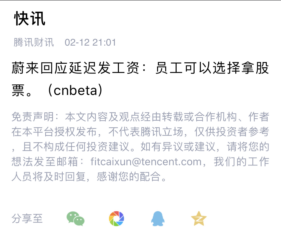 这个有点断章取义了。。延迟是因为本来2月8号发工资的,结果延迟上班了,财务都没上班自然就不好发工资。。。至于股票,特斯拉早就这么操作了。。