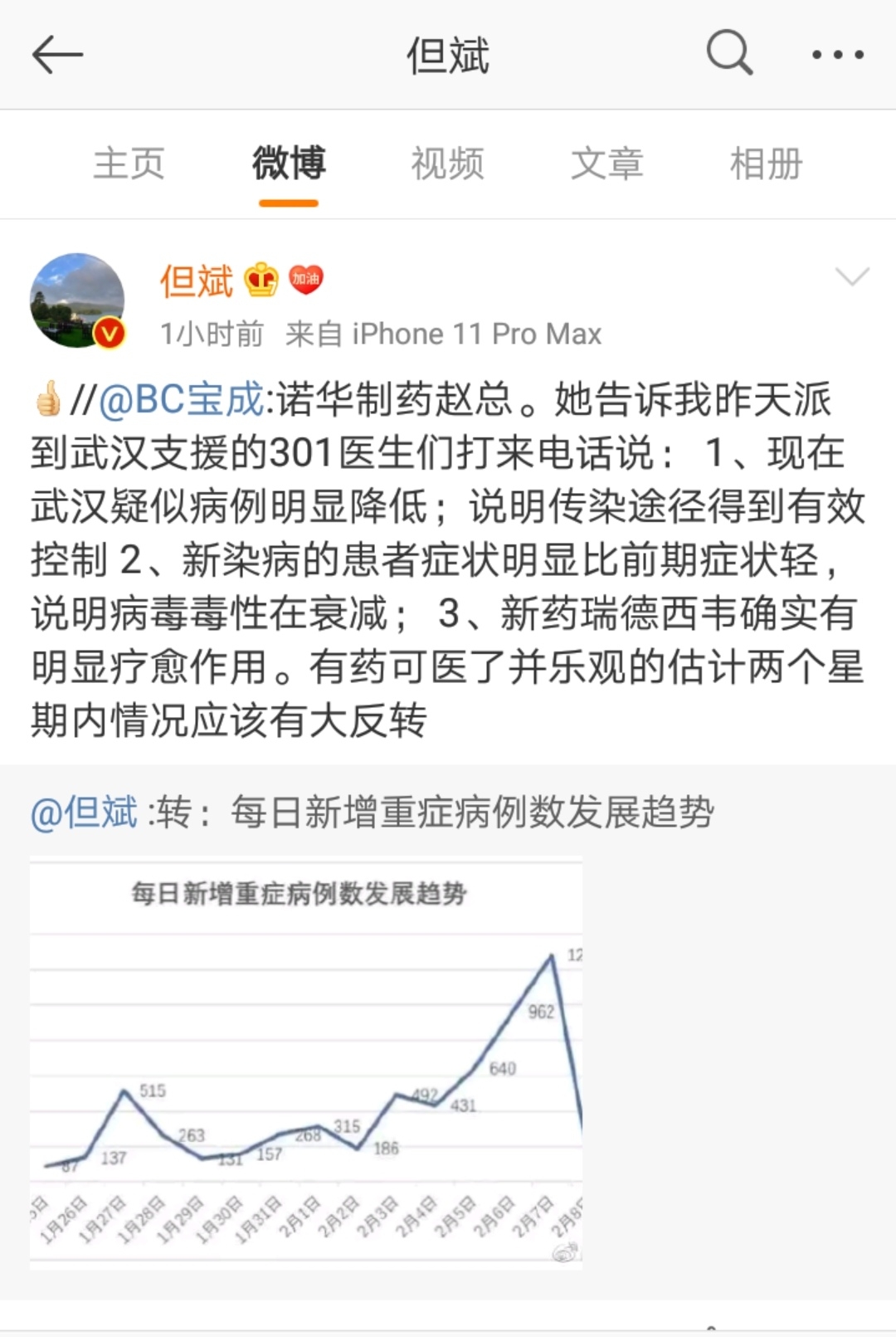 {"i18n":{"language":"zh_CN"},"detailType":1,"isChannel":false,"data":{"magic":2,"id":914877746,"tweetId":"914877746","gmtCreate":1581254400385,"gmtModify":1704343709803,"author":{"id":3473431403511168,"idStr":"3473431403511168","authorId":3473431403511168,"authorIdStr":"3473431403511168","name":"_微尘_","avatar":"https://static.laohu8.com/default-avatar.jpg","vip":1,"userType":1,"introduction":"","boolIsFan":false,"boolIsHead":false,"crmLevel":1,"crmLevelSwitch":0,"individualDisplayBadges":[],"fanSize":1,"starInvestorFlag":false},"themes":[],"images":[{"img":"https://static.tigerbbs.com/1a74be499051a3cfe174b93e3e598ac3","width":"1080","height":"1611"}],"coverImages":[{"img":"https://static.tigerbbs.com/1a74be499051a3cfe174b93e3e598ac3","width":"1080","height":"1611"}],"extraTitle":"","html":"<html><head></head><body><span><span><a href=\"https://laohu8.com/S/GILD\">$吉利德科学(GILD)$</a></span></span> 纯转发,未求证,不作投资指导,盈亏自负<p><img src=\"https://static.tigerbbs.com/1a74be499051a3cfe174b93e3e598ac3\" tg-width=\"1080\" tg-height=\"1611\"></p></body></html>","htmlText":"<html><head></head><body><span><span><a href=\"https://laohu8.com/S/GILD\">$吉利德科学(GILD)$</a></span></span> 纯转发,未求证,不作投资指导,盈亏自负<p><img src=\"https://static.tigerbbs.com/1a74be499051a3cfe174b93e3e598ac3\" tg-width=\"1080\" tg-height=\"1611\"></p></body></html>","text":"$吉利德科学(GILD)$ 纯转发,未求证,不作投资指导,盈亏自负","highlighted":1,"essential":1,"paper":1,"likeSize":4,"commentSize":4,"repostSize":0,"favoriteSize":0,"link":"https://laohu8.com/post/914877746","repostId":0,"isVote":1,"tweetType":1,"viewCount":8759,"commentLimit":10,"likeStatus":false,"favoriteStatus":false,"reportStatus":false,"symbols":["GILD"],"verified":2,"subType":0,"readableState":1,"langContent":"CN","currentLanguage":"CN","warmUpFlag":false,"orderFlag":false,"shareable":true,"causeOfNotShareable":"","featuresForAnalytics":[],"commentAndTweetFlag":false,"andRepostAutoSelectedFlag":false,"upFlag":false,"length":53,"xxTargetLangEnum":"ZH_CN"},"commentList":[{"id":2126423,"commentId":"2126423","gmtCreate":1581255994041,"gmtModify":1581255994041,"authorId":3506153078214938,"author":{"id":3506153078214938,"idStr":"3506153078214938","authorId":3506153078214938,"name":"雪崩","avatar":"https://static.tigerbbs.com/51161e985eca732d547e36570f5522dc","vip":1,"hat":"https://static.tigerbbs.com/f84859c65fc2d7681e28f6b8e9b0535a","crmLevel":1,"crmLevelSwitch":0,"individualDisplayBadges":[]},"repliedAuthorId":0,"objectId":914877746,"objectIdStr":"914877746","type":1,"supId":0,"supIdStr":"0","prevId":0,"prevIdStr":"0","content":"有说没有用药的,是因为统计口径,没住院的重症不统计。没床位了。","text":"有说没有用药的,是因为统计口径,没住院的重症不统计。没床位了。","html":"有说没有用药的,是因为统计口径,没住院的重症不统计。没床位了。","likeSize":0,"commentSize":0,"subComments":[],"verified":10,"allocateAmount":0,"commentType":"valid","coins":0,"score":0,"disclaimerType":0},{"id":2126518,"commentId":"2126518","gmtCreate":1581265576375,"gmtModify":1581265576375,"authorId":3459414049606438,"author":{"id":3459414049606438,"idStr":"3459414049606438","authorId":3459414049606438,"name":"抢钱成功了","avatar":"https://static.tigerbbs.com/c0a84345f44aea2cf58d4a0843f03d74","vip":1,"crmLevel":2,"crmLevelSwitch":0,"individualDisplayBadges":[]},"repliedAuthorId":0,"objectId":914877746,"objectIdStr":"914877746","type":1,"supId":0,"supIdStr":"0","prevId":0,"prevIdStr":"0","content":"好转是必须的,全国都在支援武汉","text":"好转是必须的,全国都在支援武汉","html":"好转是必须的,全国都在支援武汉","likeSize":0,"commentSize":0,"subComments":[],"verified":10,"allocateAmount":0,"commentType":"valid","coins":0,"score":0,"disclaimerType":0},{"id":2126481,"commentId":"2126481","gmtCreate":1581261214083,"gmtModify":1581261214083,"authorId":3494645486304008,"author":{"id":3494645486304008,"idStr":"3494645486304008","authorId":3494645486304008,"name":"李健勇","avatar":"https://static.tigerbbs.com/644d1e2162c866a5a9187105fc03c0ff","vip":1,"crmLevel":1,"crmLevelSwitch":0,"individualDisplayBadges":[]},"repliedAuthorId":0,"objectId":914877746,"objectIdStr":"914877746","type":1,"supId":0,"supIdStr":"0","prevId":0,"prevIdStr":"0","content":"不符合基本逻辑","text":"不符合基本逻辑","html":"不符合基本逻辑","likeSize":0,"commentSize":0,"subComments":[],"verified":10,"allocateAmount":0,"commentType":"valid","coins":0,"score":0,"disclaimerType":0},{"id":2126447,"commentId":"2126447","gmtCreate":1581258565564,"gmtModify":1581258565564,"authorId":3526032945875279,"author":{"id":3526032945875279,"idStr":"3526032945875279","authorId":3526032945875279,"name":"刘德志_0847","avatar":"https://static.tigerbbs.com/acd254792553ac34121d87c1a2d58cd5","vip":1,"crmLevel":7,"crmLevelSwitch":0,"individualDisplayBadges":[]},"repliedAuthorId":0,"objectId":914877746,"objectIdStr":"914877746","type":1,"supId":0,"supIdStr":"0","prevId":0,"prevIdStr":"0","content":"怎么删掉了,现在没有了","text":"怎么删掉了,现在没有了","html":"怎么删掉了,现在没有了","likeSize":0,"commentSize":0,"subComments":[],"verified":10,"allocateAmount":0,"commentType":"valid","coins":0,"score":0,"disclaimerType":0}],"isCommentEnd":false,"isTiger":false,"isWeiXinMini":false,"url":"/m/post/914877746"}
