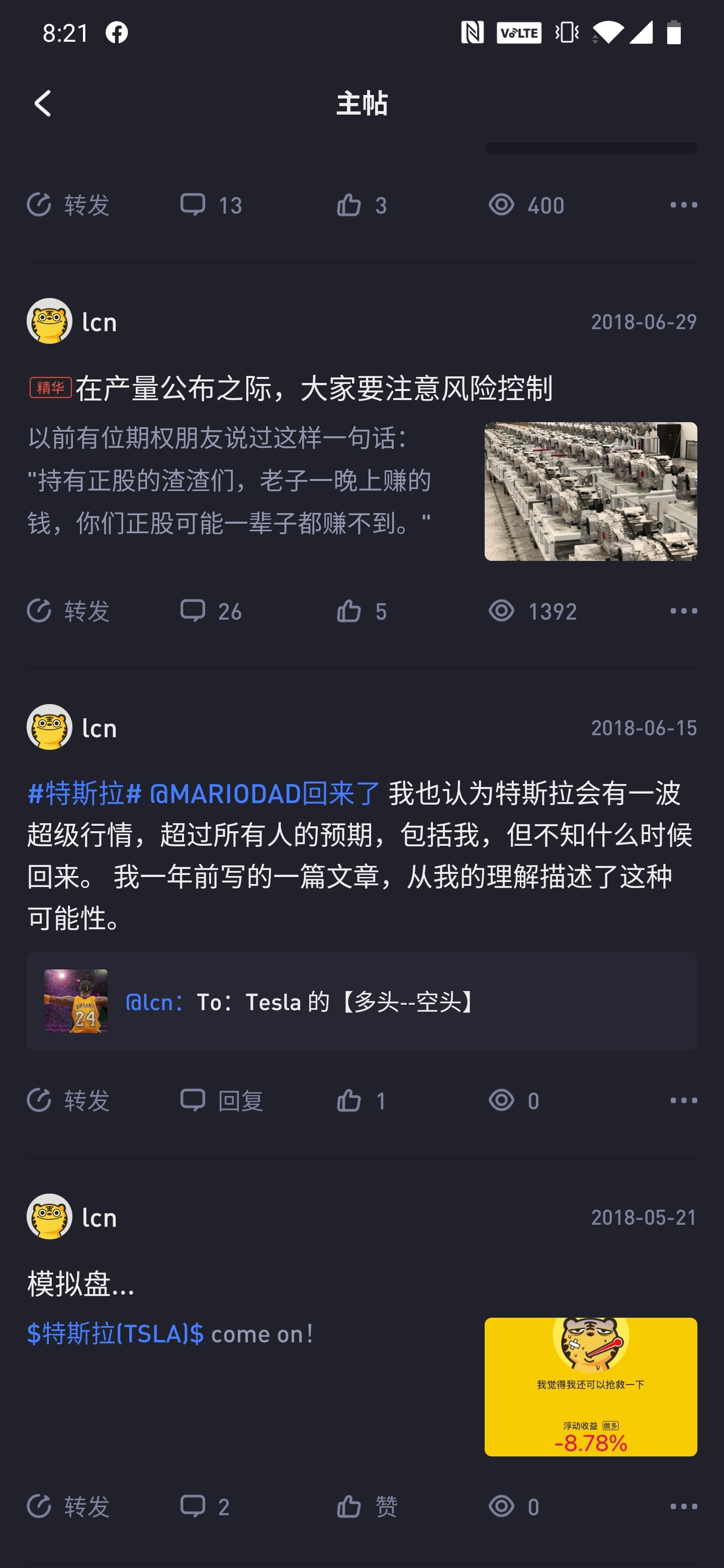 {"i18n":{"language":"zh_CN"},"detailType":1,"isChannel":false,"data":{"magic":2,"id":915684932,"tweetId":"915684932","gmtCreate":1580820951926,"gmtModify":1704342422056,"author":{"id":3454322280138952,"idStr":"3454322280138952","authorId":3454322280138952,"authorIdStr":"3454322280138952","name":"lcn","avatar":"https://static.tigerbbs.com/01e7cef294e64f48695b4a0c188d6d74","vip":1,"userType":1,"introduction":"","boolIsFan":false,"boolIsHead":false,"crmLevel":2,"crmLevelSwitch":0,"individualDisplayBadges":[],"fanSize":101,"starInvestorFlag":false},"themes":[{"themeId":"5bfad02ab61749c8bfe6573ac7bbe8a3","categoryId":"b76d3c59fc044df59779c041b25852a6","name":"晒晒更赚钱","type":0,"rnLink":"https://laohu8.com/RN?name=RNTheme&page=/theme/detail&rndata={\"themeId\":5bfad02ab61749c8bfe6573ac7bbe8a3}&rnconfig={\"headerBarHidden\": true}","description":"晒晒你的盈亏单,秀秀虎友们的实力!","image":"https://static.tigerbbs.com/347184265ee0be8c363259951f8033cb"}],"images":[{"img":"https://static.tigerbbs.com/544ba9a8edda88ee7f1fed1c1a09a45b","width":"1440","height":"2295"},{"img":"https://static.tigerbbs.com/29819234bf80a75be7a80170000be906","width":"1440","height":"3120"}],"coverImages":[{"img":"https://static.tigerbbs.com/544ba9a8edda88ee7f1fed1c1a09a45b","width":"1440","height":"2295"}],"extraTitle":"","html":"<html><head></head><body><span><span><a href=\"https://laohu8.com/S/TSLA\">$特斯拉(TSLA)$</a></span></span> <br>继续.<p><img src=\"https://static.tigerbbs.com/544ba9a8edda88ee7f1fed1c1a09a45b\" tg-width=\"1440\" tg-height=\"2295\"></p><p><img src=\"https://static.tigerbbs.com/29819234bf80a75be7a80170000be906\" tg-width=\"1440\" tg-height=\"3120\"></p></body></html>","htmlText":"<html><head></head><body><span><span><a href=\"https://laohu8.com/S/TSLA\">$特斯拉(TSLA)$</a></span></span> <br>继续.<p><img src=\"https://static.tigerbbs.com/544ba9a8edda88ee7f1fed1c1a09a45b\" tg-width=\"1440\" tg-height=\"2295\"></p><p><img src=\"https://static.tigerbbs.com/29819234bf80a75be7a80170000be906\" tg-width=\"1440\" tg-height=\"3120\"></p></body></html>","text":"$特斯拉(TSLA)$ 继续.","highlighted":1,"essential":1,"paper":1,"likeSize":7,"commentSize":0,"repostSize":0,"favoriteSize":0,"link":"https://laohu8.com/post/915684932","repostId":0,"isVote":1,"tweetType":1,"viewCount":2049,"commentLimit":10,"likeStatus":false,"favoriteStatus":false,"reportStatus":false,"symbols":["TSLA"],"verified":2,"subType":0,"readableState":1,"langContent":"CN","currentLanguage":"CN","warmUpFlag":false,"orderFlag":false,"shareable":true,"causeOfNotShareable":"","featuresForAnalytics":[],"commentAndTweetFlag":false,"andRepostAutoSelectedFlag":false,"upFlag":false,"length":19,"xxTargetLangEnum":"ZH_CN"},"commentList":[],"isCommentEnd":true,"isTiger":false,"isWeiXinMini":false,"url":"/m/post/915684932"}
