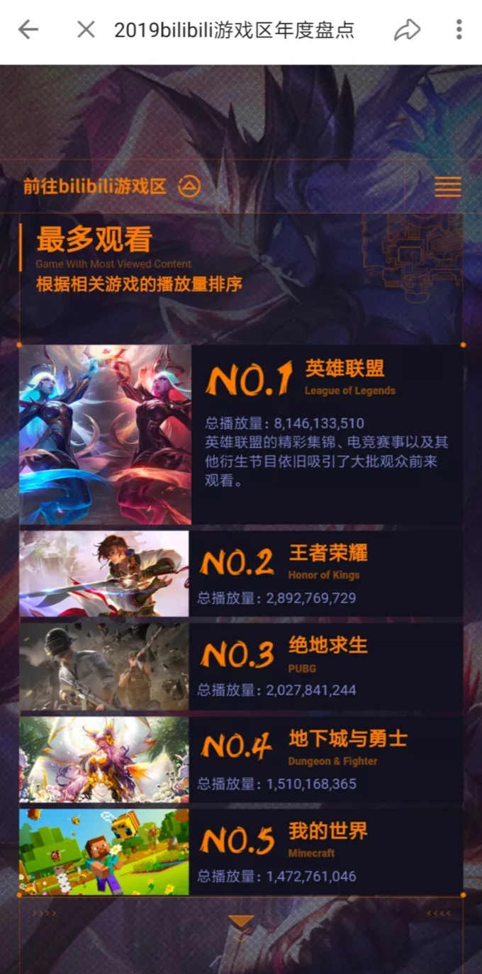 lol在b站的流量是真的大啊,难怪b站要买s赛独家直播,2-5名播放量加起来还没lol多。