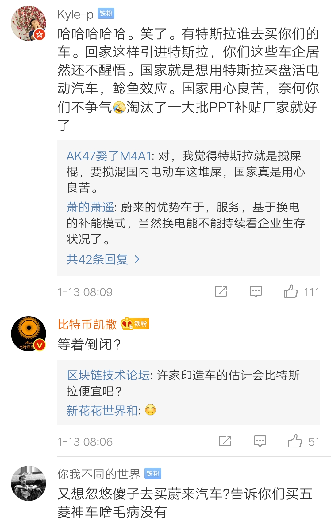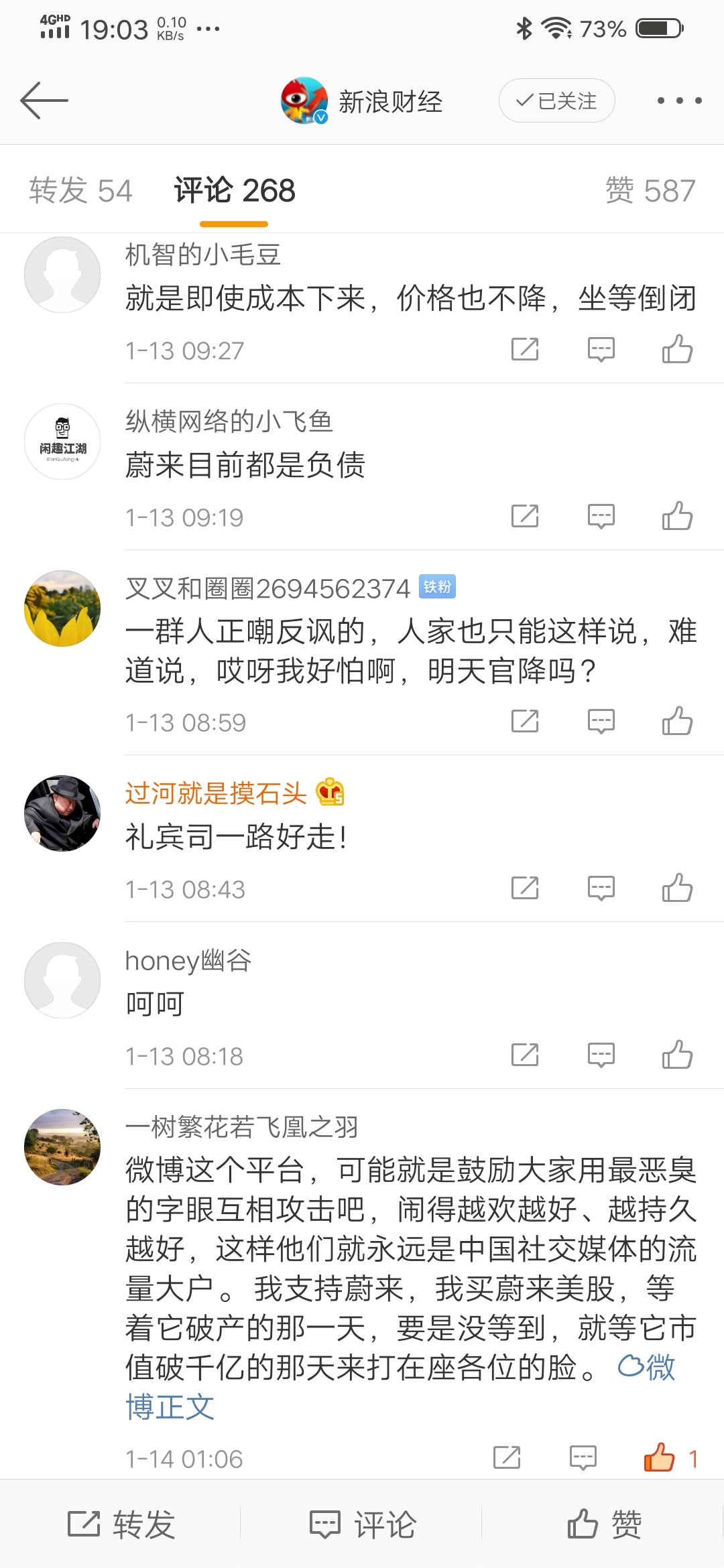 前几天我在微博怼人,说买蔚来股票,即使它破产倒闭我也无怨无悔,但是如果没有,我就要等它市值破千亿时来打喷子的脸。长期持有,期待着那一天来到!
